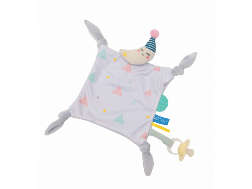 Mazlicí hračka s úchytem na šidítko je vhodná jako první hračka dítěte. Pomáhá rozvoji smyslů a emoční inteligence dítěte.