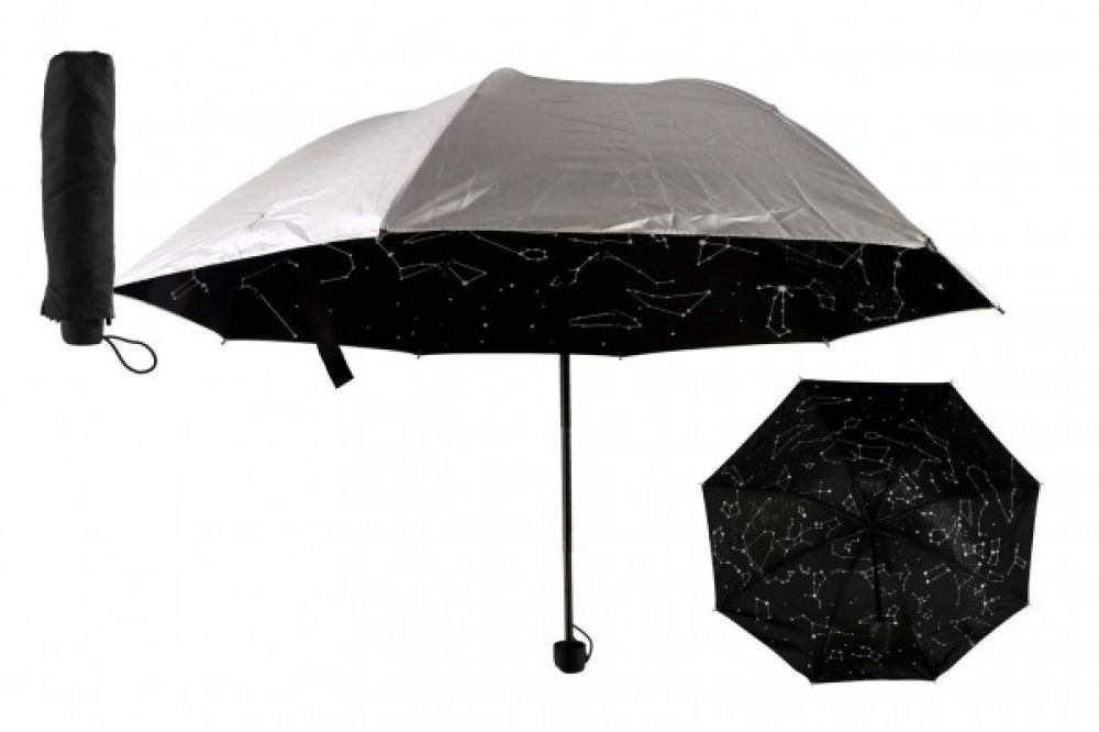 Recenze Teddies Deštník hvězdná obloha skládací 25cm látka/kov pro dospělé stříbrný v sáčku