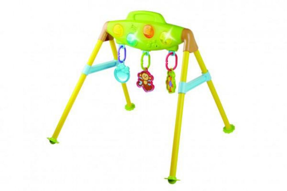 Hrazda pro děti plast s chrastítky na baterie se zvukem se světlem Barevná plastová hrazdička se třemi závěsnými hračkami. Hrazda hraje a svítí, barevné závěsné hračky rozvíjejí dětský zrak a hmat. Hrazda je skvělá vývojová hračka pro děti. Na hrazdě je zavěšené zrcátko, opička a kytička. Prvky lze odepnout. Baterie 2 x AA nejsou součástí balení.Rozměry balení 49 x 28 x 9 cmVhodné pro děti od 6 měsíců.