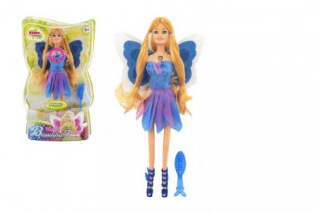 Recenze Teddies Panenka víla s křídly plast s doplňky 30cm modrá na baterie se světlem v blistru 20x32x7cm