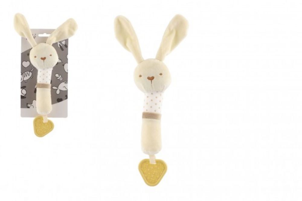Teddies Pískátko/kousátko zajíc plyš 25cm žluté na kartě v sáčku 0+