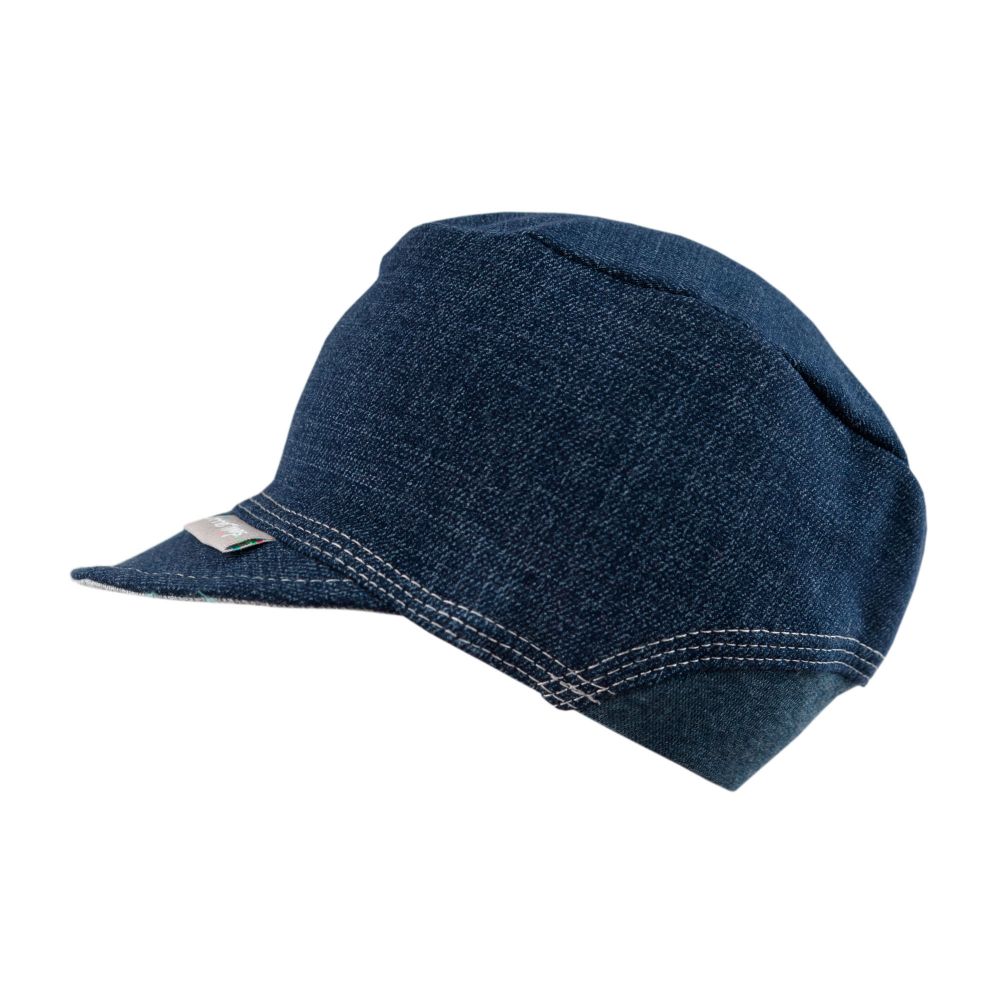 Dětská kšiltovka z příjemné a měkké bavlny se vzhledem džínoviny. Kšiltovka je rovného střihu, ouška zakrývá částečně.