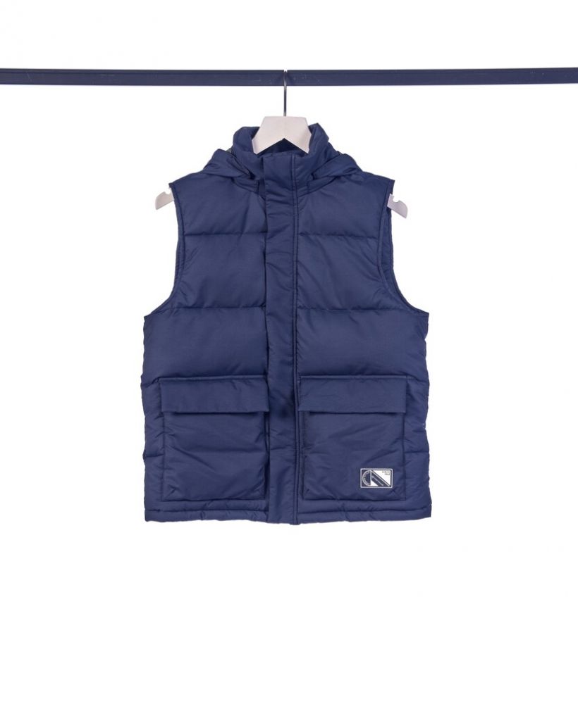 Střih: bez rukávů, s kapucí, vyšší límec, dvě kapsy na přední straně