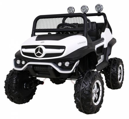 Elektrické autíčko Mercedes Unimog je jedno z nejoblíbenějších luxusních terénních aut na trhu. Má velká kola z tvrzené pěny EVA, která jsou tichá a zvládnou různé typy terénu. Mezi bohaté vybavení patří hudební panel se vstupy MP3, AUX, USB a předem nahrané zvuky na volantu (klakson, melodie). Posadíte se do pohodlně tvarované sedačky z eko kůže o šířce 44 cm, která má bezpečnostní pásy. V zadní části vozidla se nachází zavazadlový prostor o rozměrech 46 x 10 cm.