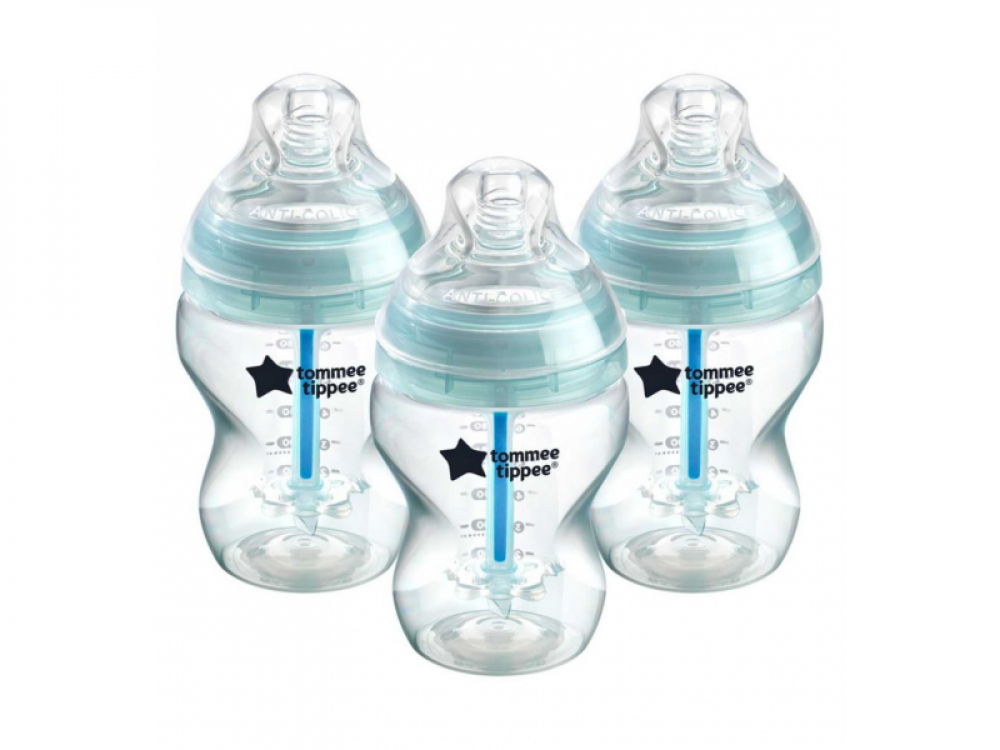 Kojenecká láhev ANTI-COLIC Tommee Tippee Closer to Nature. Nejúčinnější řešení pro miminka se sklonem k břišním kolikám. Ultracitlivý antikolikový ventil zajišťuje dokonalý odvod vzduchu během krmení a umožňuje dítěti zcela plynulé sání bez polykání vzduchu. Unikátní silikonová savička věrně napodobuje mateřský prs při kojení a tím umožňuje maminkám snadné a bezpečné kombinování kojení a krmení z lahve. Funkce kontroly teploty mléka uvnitř lahvičky varuje rodiče v případě, že je tekutina teplejší než doporučených 37°C. Náhradní silikonové savičky k těmto lahvičkám nesou rovněž označení Anti-colic. Lahvičky jsou vhodné od narození. Balení / 3 ks. Neobsahují bisfenol A.