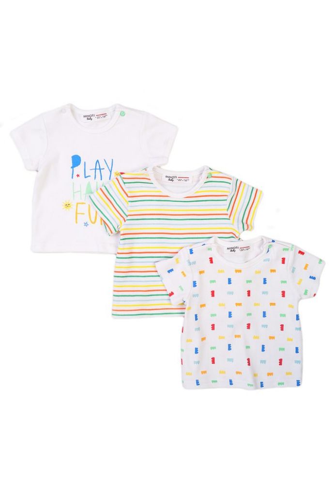 Tričko kojenecké s krátkým rukávem 3pack, Minoti, Smiling 4, bílá - 68/74
