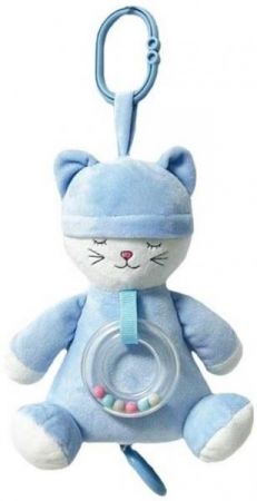 Tulilo Závěsná plyšová hračka s melodií a chrastítkem Spící Kočička 18 cm - modrá