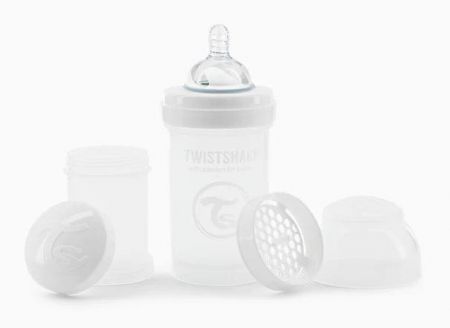 Kojenecká láhev Anti-Colic TwistShake 180 ml Kojenecká láhev Anti-Colic TwistShake 180 mlKojeneckou láhev Twistshake je vhodné kombinovat s pravidelným kojením. Každá láhev obsahuje praktický zásobník a rovněž sítko k rozmíchání směsi. Jedinečný systém Twistflow aktivně snižuje riziko novorozenecké koliky a zajišťuje rovnoměrný tok mléka. Díky širokému hrdlu se snadno čistí. Láhev svým tvarem padne do ruky a udržuje teplotu mléka. Bez BPA - bezpečné pro Vás i Vaše miminko. PP-plast - vyrobeno z vysoce kvalitního prémiového polypropylenu. Savička je vyrobena ze silikonu. Míchací sítko účinně rozpouští hrudky. Antikolikový ventil pomáhá zabraňovat kolikám. Zásobník si doma můžete připravit. Extra široké hrdlo - umožňuje snadné plnění a čištění. Ergonomický tvar - dobře padne do ruky jak dítěti tak i rodičům.Techniké parametry- odolné teplotě do 100 °C- lze ohřívat v mikrovlnce a vložit do mrazáku- savička S vhodná od narození- objem 180 ml- barva: bíláDíky širokému hrdlu se snadno čistí. Láhev svým tvarem padne do ruky a udržuje teplotu mléka.Bez BPA - bezpečné pro Vás i Vaše miminkoPP-plast - vyrobeno z vysoce kvalitního prémiového polypropylenuSavička - vyrobena ze silikonuMíchací sítko - účinně rozpouští hrudkyAntikolikový ventil - pomáhá zabraňovat kolikámZásobník - doma si můžete připravit dávku s sebou a uchovat v praktickém zásobníkuExtra široké hrdlo - umožňuje snadné plnění a čištěníErgonomický tvar - dobře padne do ruky jak dítěti tak i rodičům
