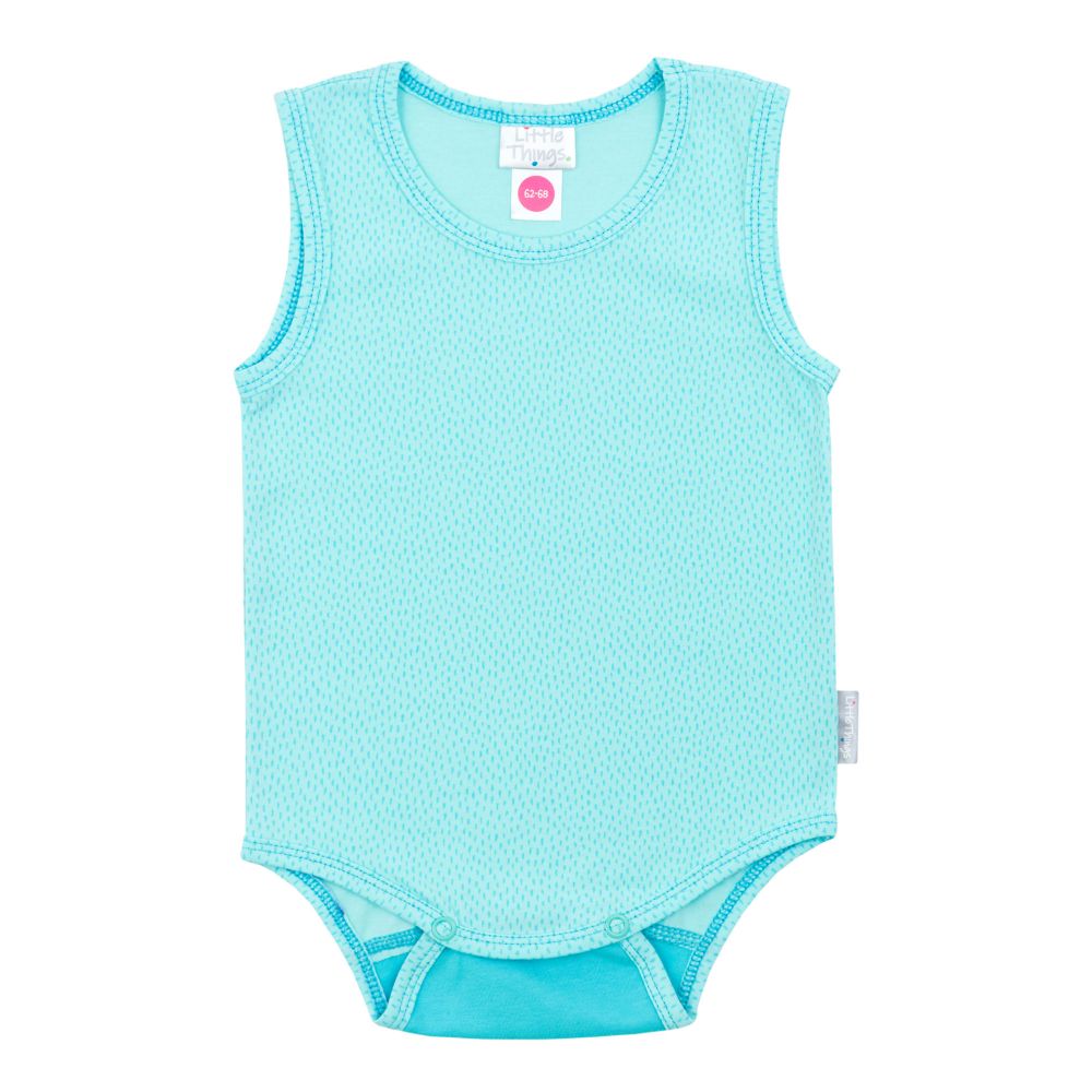 Bavlněné bodytílko s motivem stopiček v tyrkysovém provedení. Nezbytný kousek do šatníku každého batolete - udrží plenku na svém místě a zádíčka v teple. Tričko navrch a outfit je hotový.