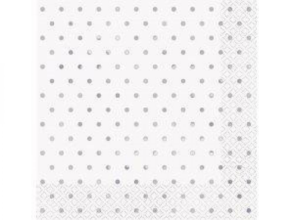 Papírové ubrousky v bílé barvě se stříbrnými puntíky.Velikost ubrousků je po rozložení 33x33cm. Perfektní pro ozdobu Vašeho party stolu. Papírové ubrousky v bílé barvě se stříbrnými puntíky.Velikost ubrousků je po rozložení 33x33cm. Perfektní pro ozdobu Vašeho party stolu.