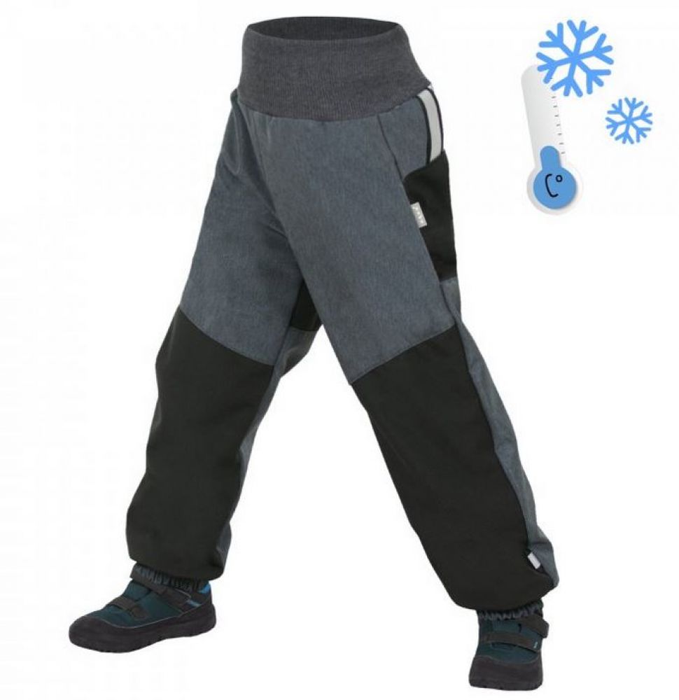 Recenze Unuo Dětské softshellové oteplovačky s fleecem Černá/Žíhaná antracitová 128/134