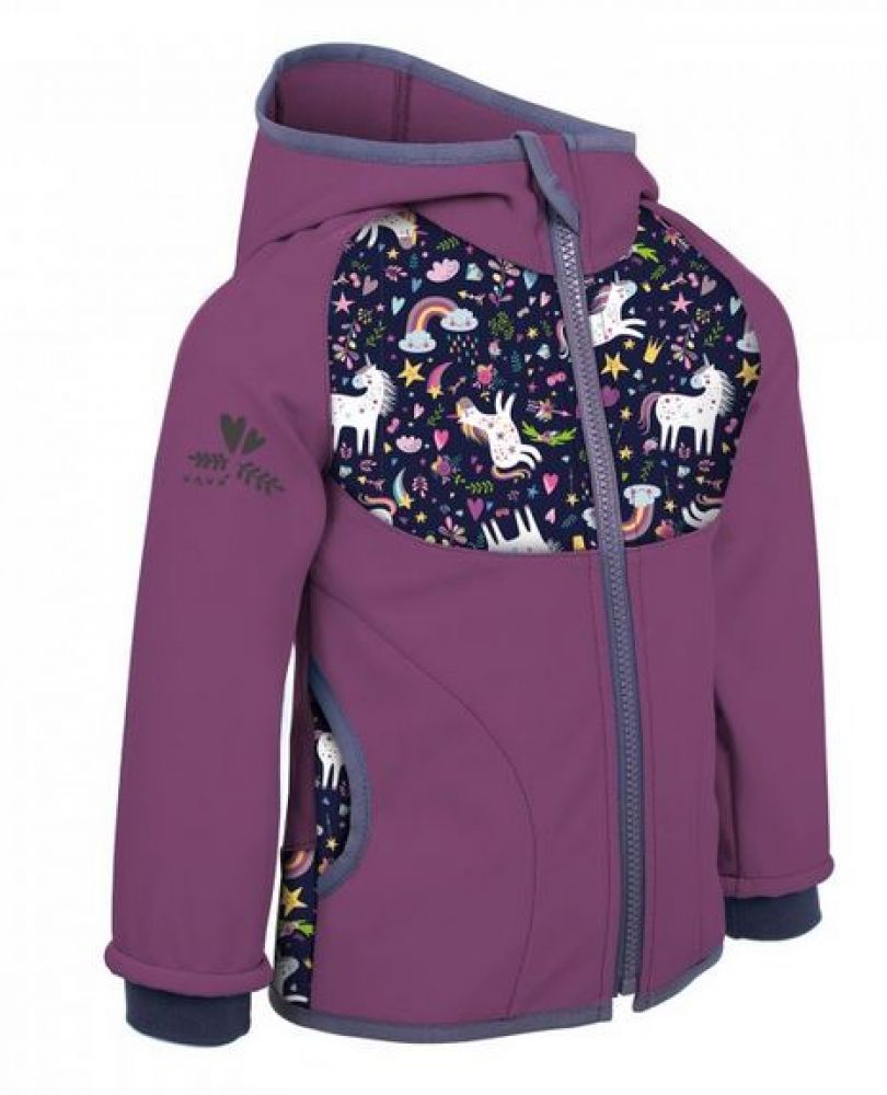 Recenze Unuo Softshellová bunda s fleecem Ostružinová, Jednorožci 110/116