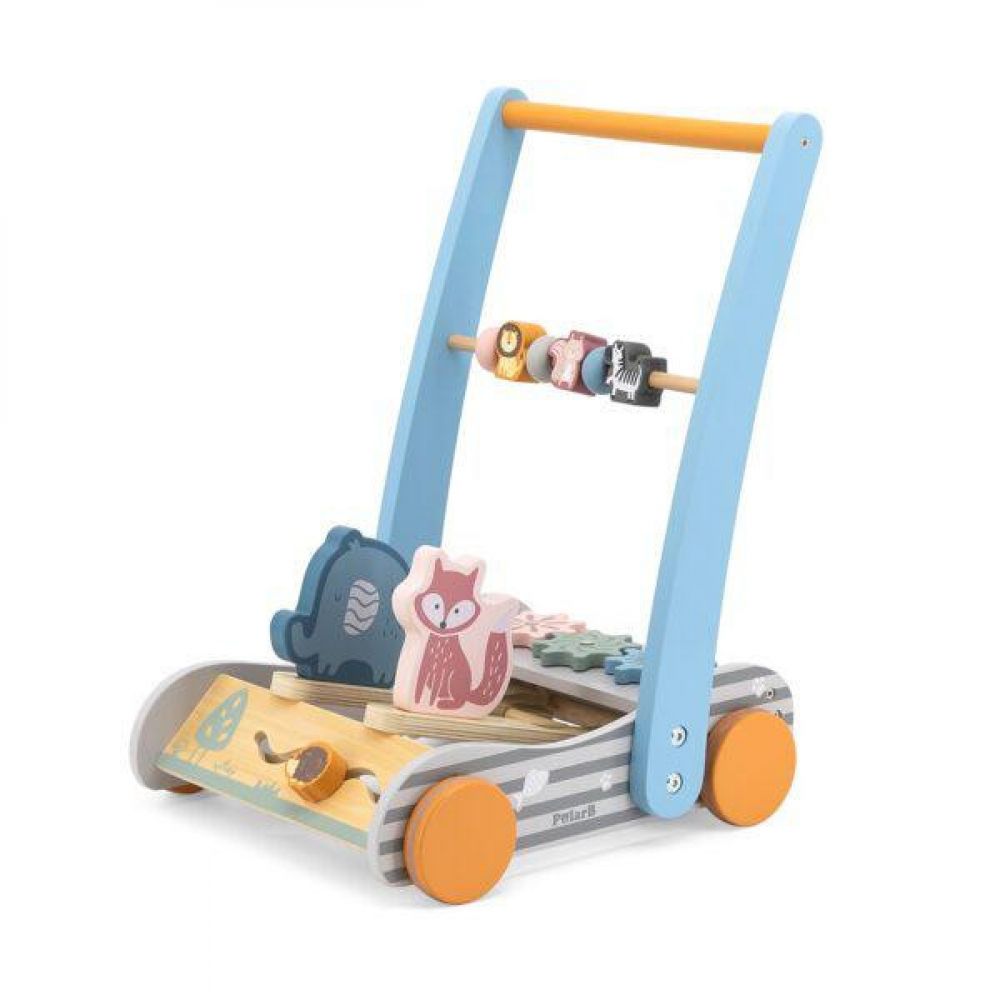 Multifunkční chodítko s rozkošným designem je rozhodně dobrým kámošem pro batolata! Na rozdíl od mnoha produktů na trhu lze tento produkt nejen posouvat dopředu, ale i dozadu. Multifunkční chodítko s rozkošným designem je rozhodně dobrým kámošem pro batolata! Na rozdíl od mnoha produktů na trhu lze tento produkt nejen posouvat dopředu, ale i dozadu. Robustní dřevěná konstrukce nabízí oporu a pomáhá s rovnováhou a stabilitou, když se ti nejmenší učí chodit. Roztomilá zvířátka pomáhají rozvíjet rozpoznávání zvířat a barev. Liška a slon houpající se nahoru a dolů vydávají zvuk při tlačení dopředu pro větší zábavu při hraní. Rozměr chodítka: cca 42,5 x 32,5 x 28,3 cm. Rozměr balení: cca 38 x 30,5 x 12,5 cm. Věk: 18m+.
