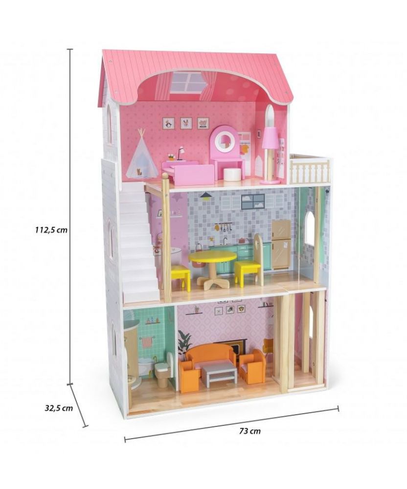 Dřevěný domeček pro panenky o rozměrech 730 mmx 1125mm s dřevěným nábytkem. Dřevěný domeček pro panenky o rozměrech 730 mmx 1125mm s dřevěným nábytkem.Vhodné pro děti od 3 let.