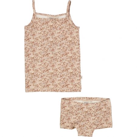 Wheat 2 dílná sada měkkého spodního prádla s topem a spodním prádlem je ideální pro malé děti. Sada je k dispozici v krásných barvách a sladkých ručně kreslených potiscích, které vytvořil vlastní designový tým společnosti Wheat. Top má tenká ramínka a souprava je vyrobena z měkké organické bavlny.
