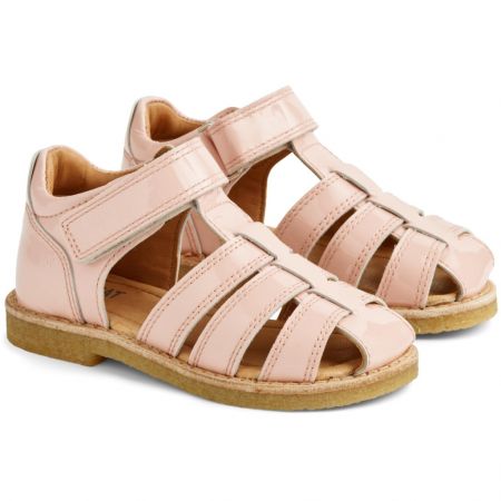 Sandál je vyroben z lakované kůže a má krásný lesklý vzhled. Odolný materiál nabízí skvělé pohodlí pro vaše dítě. Podšívka z kůže bez chromu a kovu. Vložky jsou vyrobeny z latexu a potaženy kůží bez chromu a kovů. Podešev je vyrobena z krepového pryžového materiálu. Má malý podpatek a kožený lem s ozdobným prošíváním.