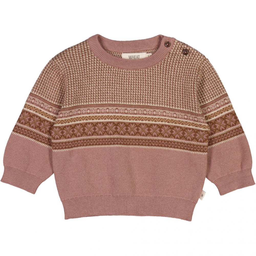 Wheat kojenecký žakárový svetr Elias 6559 - powder brown Velikost: 62 Bio bavlna