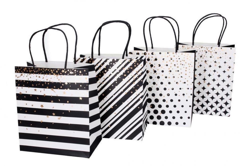 Dárková taška 18 x 21 x 10 cm Černobílá Potěšte rodinu a přátele hezkým dárkem ukrytým do papírové tašky. Vyberte si motiv, který se Vám líbí a může se balit.Velikost: MRozměry: 18 (š) x 21 (v) x 10 (h) cmDodáváme dle aktuální skladové dostupnosti. Cena za kus.