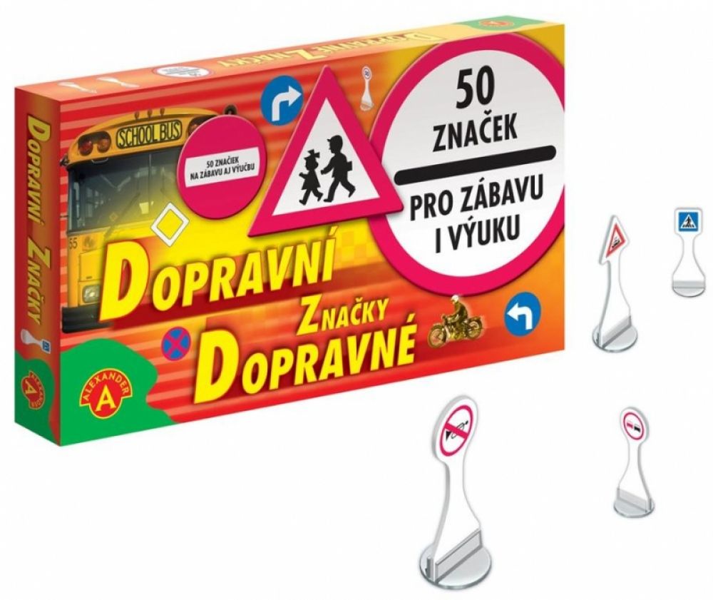 Dopravní značky Díky soupravy 50 nejdůležitějších dopravních značek bude hra s autíčky na koberci s plánem města mnohem zábavnější. Dětičky při hraní se mohou naučit význam značek a své poznatky budou vědět použít i v skutečném provozu.