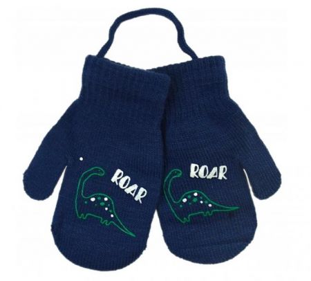 YO ! YO! Zimní chlapecké rukavičky se šňůrkou Roar Dino - granátové, 80-92 (12-24m)