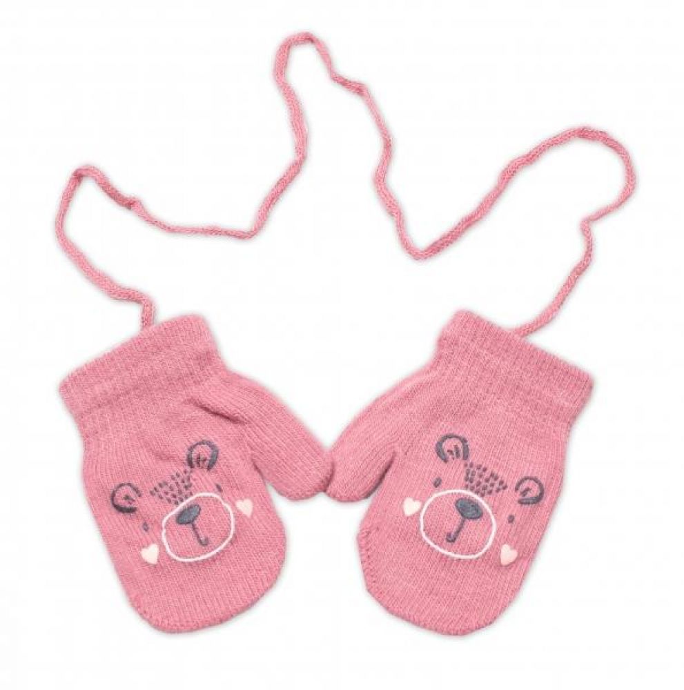 YO ! YO! Zimní dívčí rukavičky se šňůrkou Medvídek - růžové, vel. 98/104, 98-104 (2-4r)