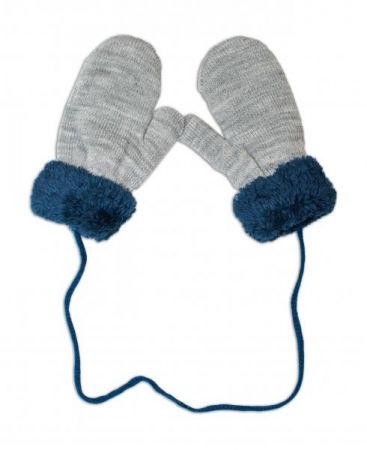 YO ! YO! Zimní kojenecké rukavičky s kožíškem - se šňůrkou YO-šedé/granátový kožíšek vel. 110, 110 (4-5r)