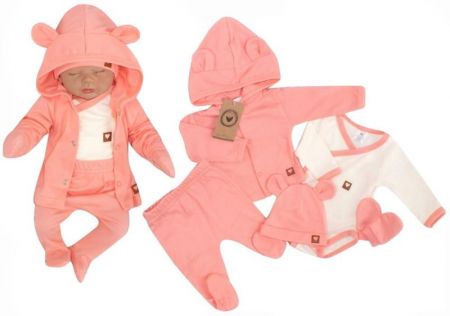 Z&Z Sada do porodnice 5D, body, polodupačky, kabátek, čepička, rukavičky Z&Z, meruňka, vel. 62, 62 (2-3m)