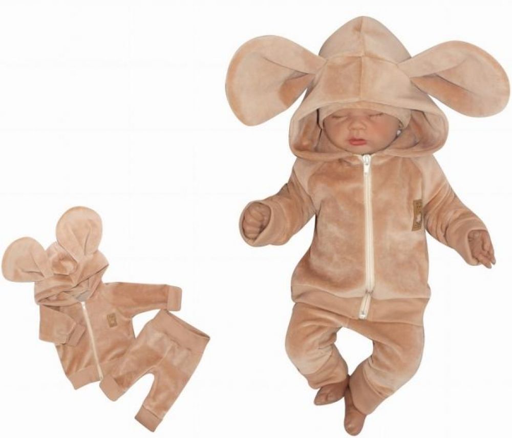 Z&Z Z&Z Velurová, semišková tepláková souprava s oušky MYŠKA - béžová, vel. 62, 62 (2-3m)