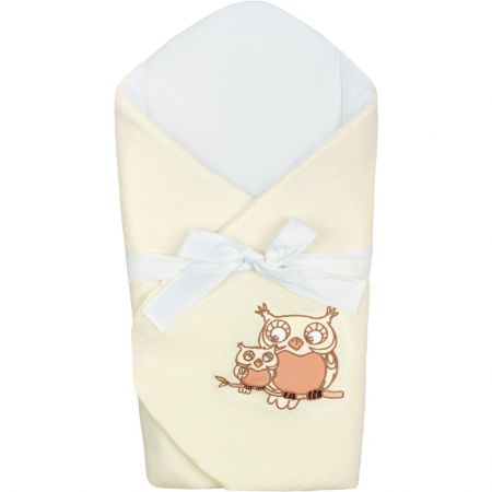 Dětská zavinovačka s výztuží New Baby Sovičky. Je vyplněna hypoalergenním vláknem a molitanovou výztuží pro lepší držení. Zavinovačka má vyšitý velký obrázek soviček. Zapínání na suchý zip. Rozměry: cca 75x75 cm. Složení: povlak 100% bavlna, výplň: 100% polyester.