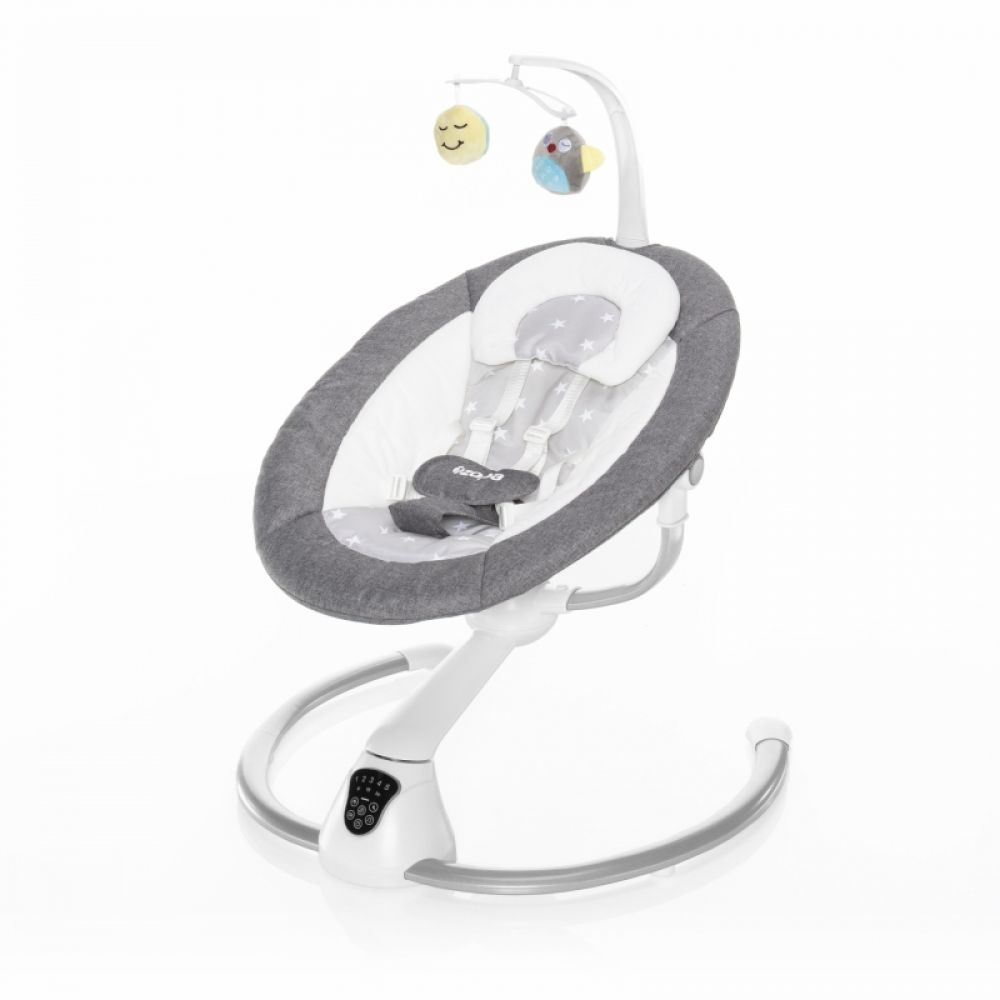 Od narození do 9 kg Moderní design Otáčení sedátka o 360° Polohování sedátka do 2 poloh Přehledný dotykový ovládací display Praktické dálkové ovládání Možnost nastavení intenzity a doby houpání na 8, 15 a 30 minut Automatické zapnutí houpání při detekci pohybu (neklidu) dítěte Melodie a zvuky přírody s volbou ovládání hlasitosti Robustní rám Hrazda s hračkami Příjemné materiály Pratelný potah 5bodový bezpečnostní pás Napájení adaptérem (součást balení) Napájení bateriemi (4x AA nejsou součástí balení) Splňuje EN 12790