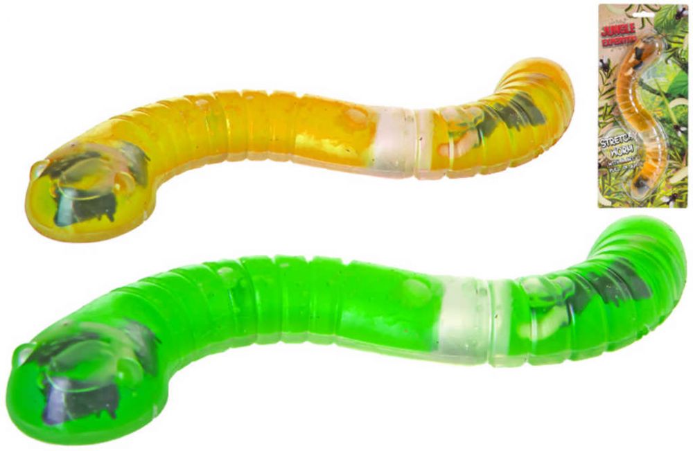 Měkký, mačkací had s průsvitným, rosolovitým tělem, s mouchami a larvami, ve dvou barevných variantách, pro všechny malé přírodovědce. Antistresové zvířátko. Baleno na kartě.